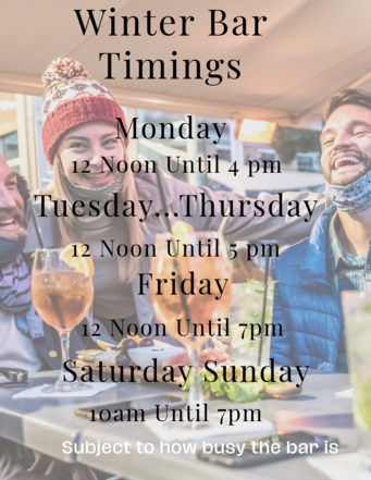 Bar and lounge: – Please be aware that the following bar opening and closing times will be in operation until further notice:-